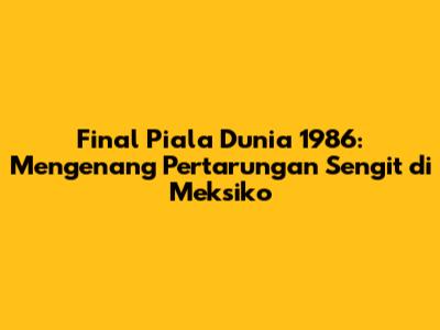 Guys, mari kita bernostalgia sejenak dan kembali ke tahun 1986, ketika dunia sepak bola menyaksikan salah satu final Piala Dunia paling epik sepanjang sejarah. Final Piala Dunia 1986, yang digelar di Stadion Azteca, Meksiko, bukan hanya sekadar pertandingan, tetapi sebuah drama olahraga yang sarat akan sejarah, emosi, dan kenangan tak terlupakan. Pertandingan ini mempertemukan Argentina yang dipimpin oleh sang legenda, Diego Maradona, melawan Jerman Barat yang tangguh. Kita akan membahas secara mendalam tentang pertandingan ini, mulai dari latar belakang, perjalanan kedua tim menuju final, hingga dampak yang ditimbulkannya bagi dunia sepak bola.