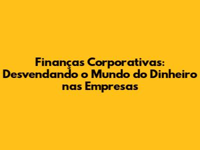 Finanças Corporativas: Guia Essencial Para Iniciantes