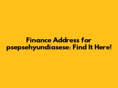 Finance Address For Psepsehyundiasese: Find It Here!