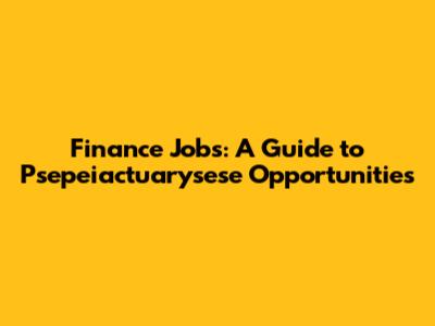 Finance Jobs: A Guide To Psepeiactuarysese Opportunities