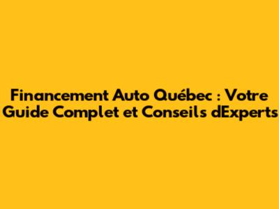Financement Auto Québec : Guide Complet & Conseils Essentiels