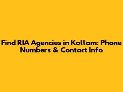 Find RIA Agencies In Kollam: Phone Numbers & Contact Info