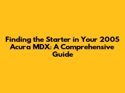 Finding The Starter: 2005 Acura MDX Location Guide