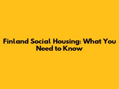 Finland Social Housing: What You Need To Know
