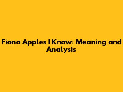Hey guys! Ever wondered about the deep meanings behind Fiona Apple's songs? Today, we're diving deep into one of her most intriguing tracks, "I Know." This song, like many of Fiona’s works, is a complex tapestry of emotions, experiences, and raw honesty. Understanding the core themes and lyrical nuances can give you a whole new appreciation for Apple's genius.