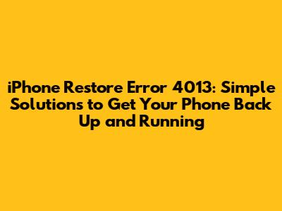 Fix IPhone Restore Error 4013: Simple Solutions