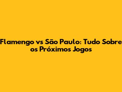 Flamengo Vs São Paulo: Próximos Jogos E Onde Assistir