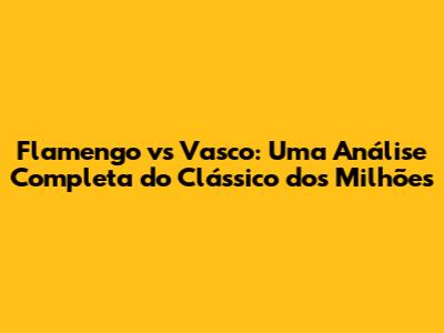 Flamengo Vs Vasco: Uma Análise Completa Do Clássico Dos Milhões