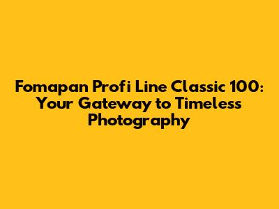 Unleash Your Creativity with Fomapan Profi Line Classic 100