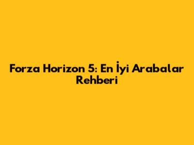 Forza Horizon 5: En İyi Arabalar Rehberi