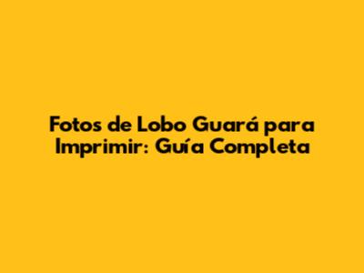 Fotos De Lobo Guará Para Imprimir: Guía Completa