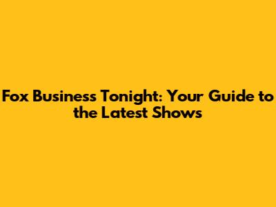 Fox Business Tonight: Your Guide To The Latest Shows