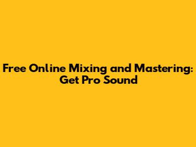 Free Online Mixing And Mastering: Get Pro Sound