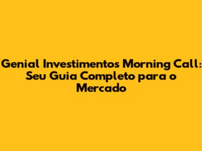 Genial Investimentos Morning Call – Fala, investidor! Se você está buscando conhecimento e informações para navegar no dinâmico mundo dos investimentos, chegou ao lugar certo. Neste guia completo, vamos mergulhar no universo do Genial Investimentos Morning Call, desvendando o que é, como funciona e como você pode utilizar essa ferramenta poderosa para otimizar suas estratégias e alcançar seus objetivos financeiros. Prepare-se para uma jornada informativa e prática, com dicas valiosas, análises de mercado e tudo o que você precisa saber para tomar decisões de investimento mais assertivas.