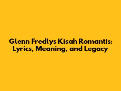 Glenn Fredly's 'Kisah Romantis': Lyrics, Meaning, And Legacy