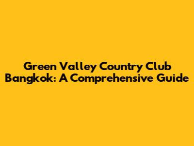 Green Valley Country Club Bangkok: A Comprehensive Guide