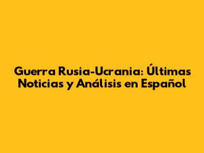 Guerra Rusia-Ucrania: Últimas Noticias Y Análisis En Español