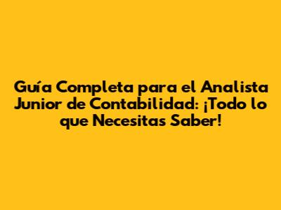 Guía Completa Para El Analista Junior De Contabilidad: ¡Todo Lo Que Necesitas Saber!