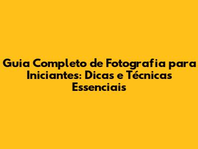 Guia Completo De Fotografia Para Iniciantes: Dicas E Técnicas Essenciais