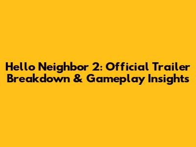 Hello Neighbor 2: Official Trailer Breakdown & Gameplay Insights