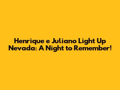 Hey guys! Get ready to dive into an unforgettable night as we talk about the sensational Henrique e Juliano bringing their incredible energy and music to Nevada! This is not just any concert; it’s an experience, a memory, and a testament to the power of music uniting people. Let’s break down why this event was so special and why you should be excited for their next tour!