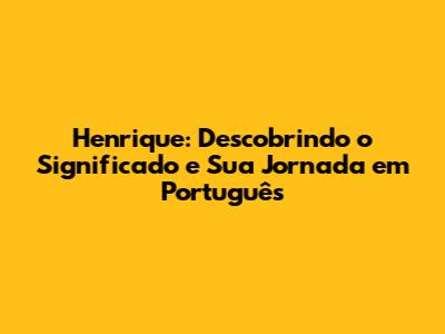 Henrique, um nome carregado de história e significado, ressoa com força na língua portuguesa. Mas, o que realmente torna Henrique especial? Neste artigo, vamos mergulhar fundo no universo de Henrique, explorando suas raízes, seu significado e algumas curiosidades que o tornam um nome único e marcante. Se você está pensando em dar esse nome para seu filho, ou simplesmente tem curiosidade sobre ele, prepare-se para uma viagem fascinante pelo mundo de Henrique!