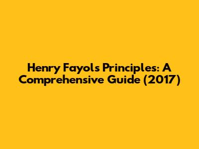 Henry Fayol's Principles: A Comprehensive Guide (2017)