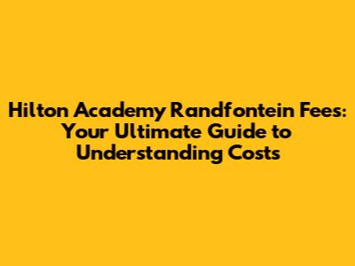 Hilton Academy Randfontein Fees: Your Ultimate Guide to Understanding Costs