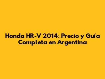 Honda HR-V 2014: Precio Y Guía Completa En Argentina