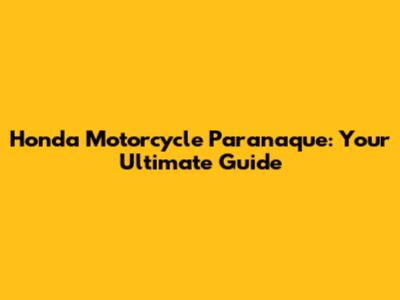 Honda Motorcycle Paranaque: Your Ultimate Guide