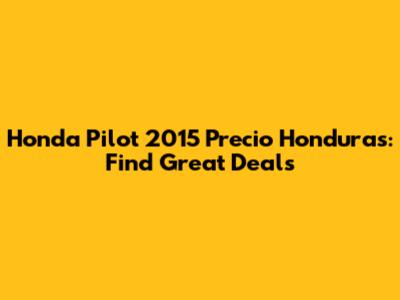 Hey guys! Are you on the hunt for a reliable and spacious SUV in Honduras? The Honda Pilot 2015 might just be what you need. This article dives into everything you need to know about the Honda Pilot 2015 precio Honduras, helping you make an informed decision and snag the best deal possible. We'll explore pricing, factors influencing costs, where to find them, and even give you some tips for negotiating like a pro. Buckle up; let's get started!