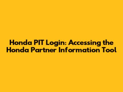 Honda PIT Login: Accessing The Honda Partner Information Tool