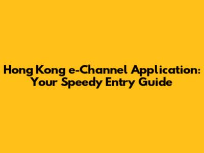 Hong Kong E-Channel Application: Your Speedy Entry Guide