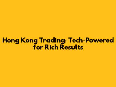 Hong Kong Trading: Tech-Powered For Rich Results
