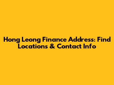 Hong Leong Finance Address: Find Locations & Contact Info