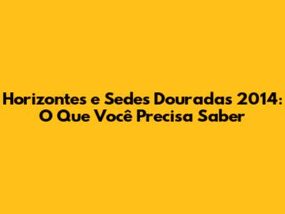 Horizontes E Sedes Douradas 2014: O Que Você Precisa Saber