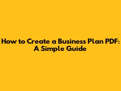 How To Create A Business Plan PDF: A Simple Guide