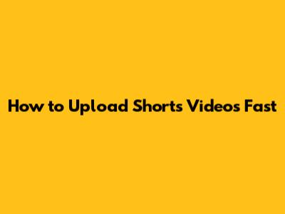 How To Upload Shorts Videos Fast