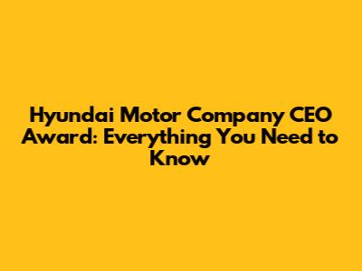 Hyundai Motor Company CEO Award: Everything You Need To Know