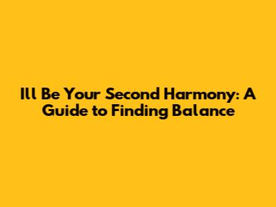 I'll Be Your Second Harmony: A Guide To Finding Balance