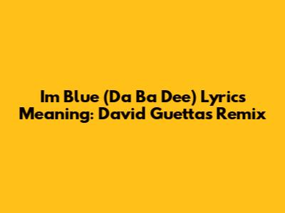 Hey guys! Ever wondered what the lyrics to Eiffel 65's iconic song "I'm Blue (Da Ba Dee)" actually mean, especially in David Guetta's electrifying remix? Well, you're in the right place! Let's dive deep into the meaning behind the catchy tune and explore why it's become such a massive hit.