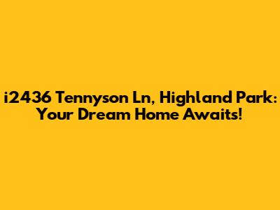 Hey everyone! Are you on the hunt for a stunning home in Highland Park? Well, buckle up, because i2436 Tennyson Ln might just be the place you've been dreaming of! This property is more than just a house; it's a potential lifestyle upgrade, offering a blend of luxury, comfort, and prime location. Let's dive in and explore what makes this address so special, shall we? We'll cover everything from the architectural details to the neighborhood vibes, giving you a complete picture of why this could be your next home sweet home. Get ready to be wowed, guys!