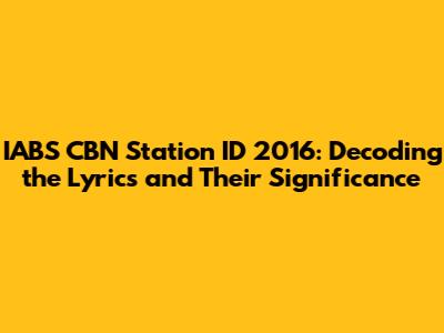 Hey guys! Ever found yourself humming along to a catchy tune and wondering what it really means? That's what we're diving into today with the IABS CBN Station ID 2016 lyrics! Specifically, we'll break down the lyrics, explore their significance, and why this particular station ID resonated so deeply with Filipinos. Trust me, it's more than just a jingle; it's a snapshot of a moment in time, a reflection of values, and a testament to the power of media.