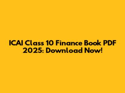 ICAI Class 10 Finance Book PDF 2025: Download Now!
