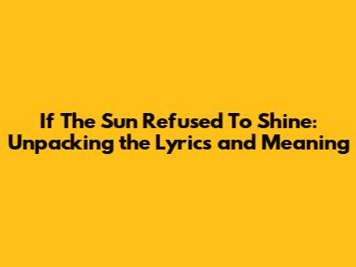Hey guys! Ever heard a song that just hits you right in the feels? The kind that makes you think, really think, about life, love, and everything in between? Well, "If The Sun Refused To Shine" is one of those songs. It's a powerful ballad, and at first glance, the lyrics might seem straightforward, but trust me, there's a lot more going on beneath the surface. So, let's dive deep and unravel the layers of meaning packed into this beautiful piece.