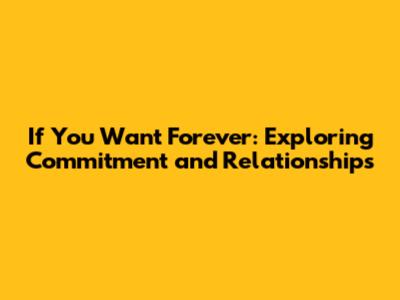 If You Want Forever: Exploring Commitment And Relationships