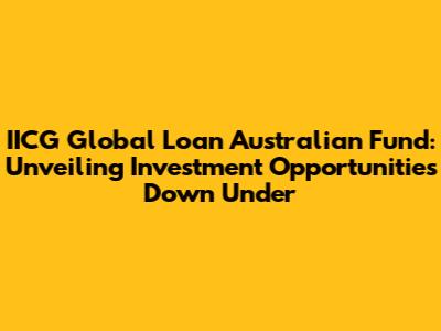 Hey everyone, let's dive into the fascinating world of the IICG Global Loan Australian Fund! If you're like me, always on the lookout for smart investment options, especially those with a global flavor and an Aussie twist, then buckle up. This article is your go-to guide, filled with insights and a friendly chat about what makes this fund tick. We'll explore the fund's mechanics, its potential benefits, and what you need to know before considering it for your portfolio. So, grab a coffee, get comfy, and let's unravel the mysteries of the IICG Global Loan Australian Fund together.