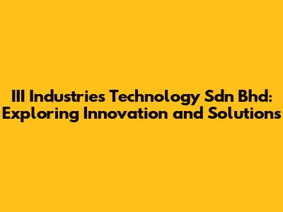 Hey guys! Ever heard of III Industries Technology Sdn Bhd? If not, buckle up because we're about to dive deep into what makes this company tick, what they offer, and why they might just be a game-changer in their field. In this article, we're not just throwing facts at you; we're breaking down the essence of III Industries Technology Sdn Bhd in a way that’s both informative and engaging. So, let's get started!