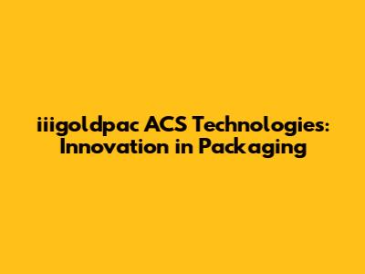 Iiigoldpac ACS Technologies: Innovation In Packaging