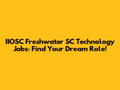 IIOSC Freshwater SC Tech Jobs: Find Your Dream Role!